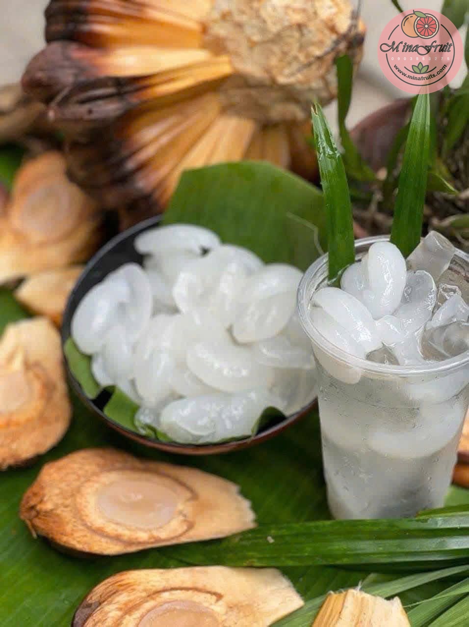 Có thể nấu chung với đường thốt nốt tạo nên món “dừa nước rim đường” thơm dịu, ngọt thanh, đậm đà hương vị miền Tây.
