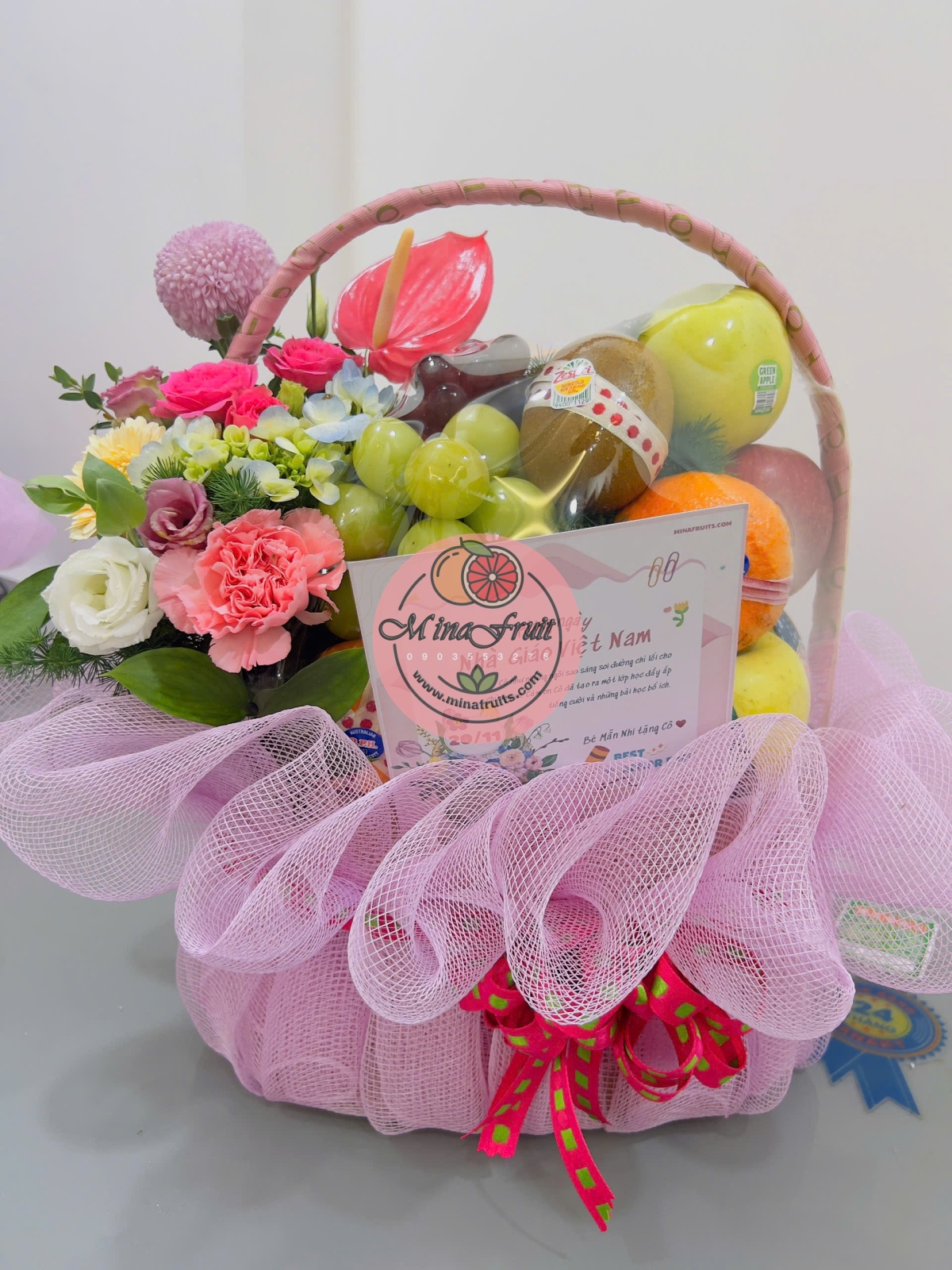 Giỏ quà tặng trái cây MNG041 mang vẻ đẹp mềm mại và nổi bật với tông hồng pastel, được kết hợp giữa trái cây nhập khẩu chọn lọc và hoa tươi cao cấp, tạo nên một món quà sang trọng – đẳng cấp nhưng vẫn đầy sự tinh tế và ấm áp.