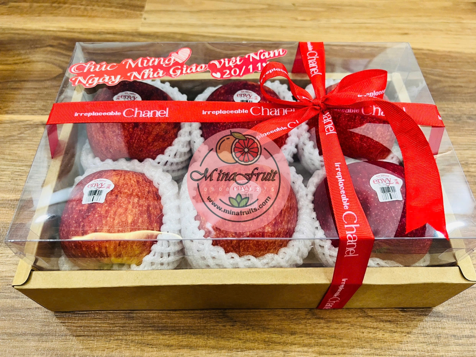 Hộp quà gồm 6 quả táo Envy nhập khẩu từ New Zealand hoặc Mỹ, nổi bật với: